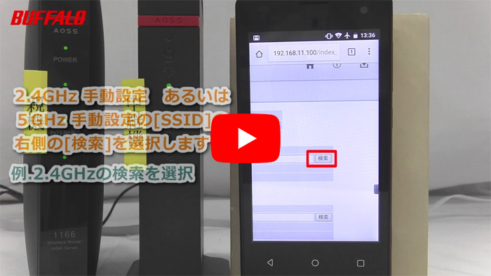 12. 接続方法に「手動設定」を選択し、「2.4 GHz 手動設定」または「5 GHz 手動設定」の[検索]をクリックします。
